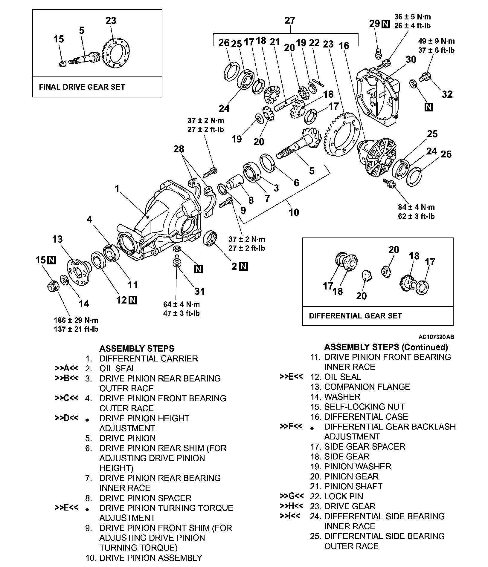 >>E<< DRIVE PINION TURNING TORQUE ADJUSTMENT/OIL SEAL INSTALLATION