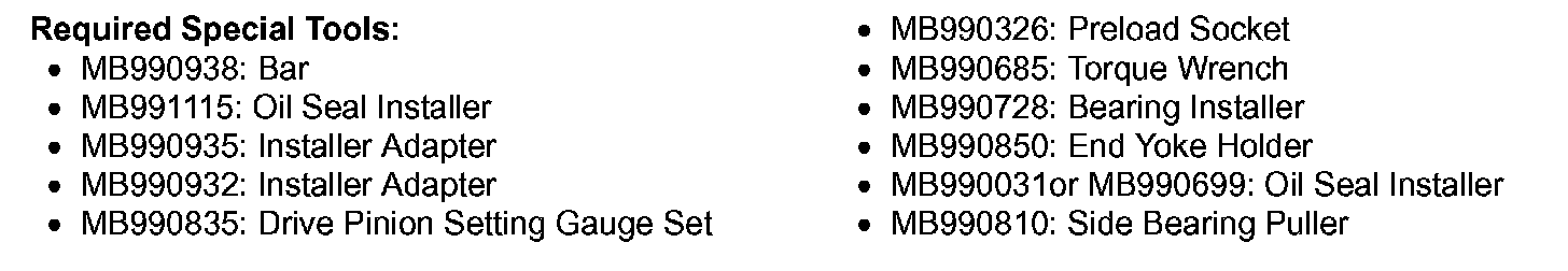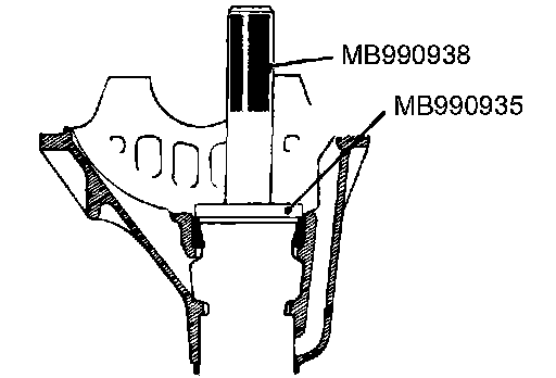 Use the special tools MB990938 and MB990935 to press-fit the drive pinion rear bearing outer race.