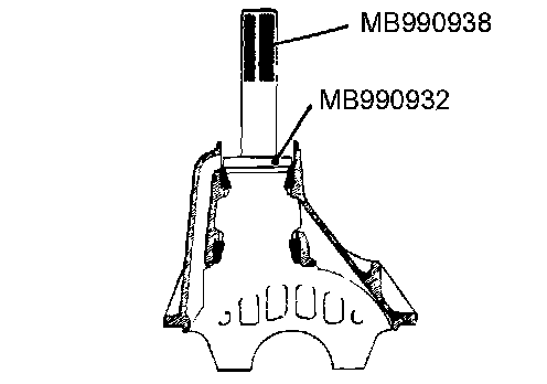 Use special tools MB990938 and MB990932 to press-fit the drive pinion front bearing outer race.