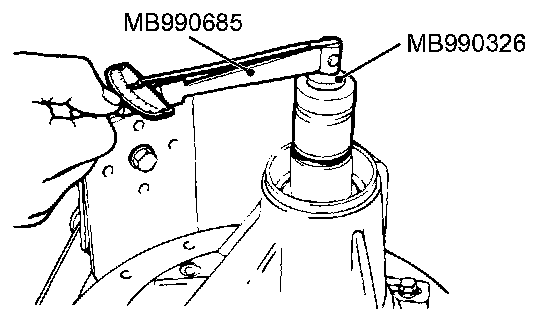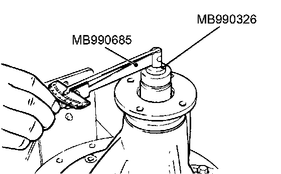 7. Use the special tools MB990685 and MB990326 to measure the drive pinion turning torque (with drive pinion oil seal) to verify that the drive pinion turning torque complies with the standard value.