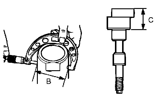 8. Use a micrometer to measure the shown dimensions (B, C) of special tools MB990392 and MB990836.