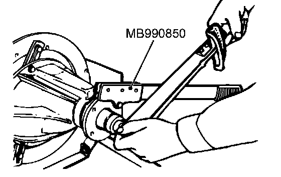 2. Tighten the companion flange self-locking nut to the specified torque while holding the companion flange with the special tool MB990850.