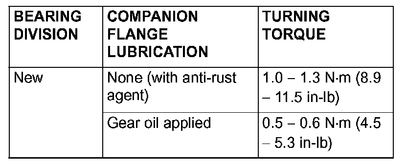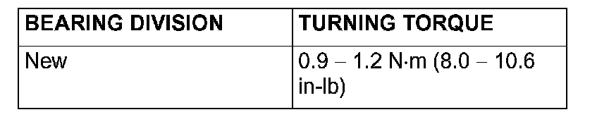 NOTE: Because the special tool cannot be turned one turn, turn it several times within the range that it can be turned; then, after fitting to the bearing, measure the turning torque.