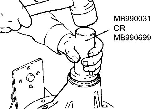 5. Remove the companion flange and drive pinion again. Then insert the drive pinion front bearing inner race into the differential carrier. Use special tool MB990031 or MB990699 to press-fit the drive pinion oil seal.