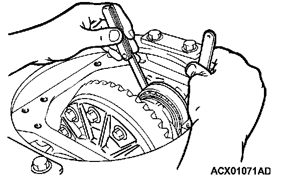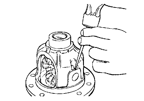 3. Insert a wedge between the side gear and the pinion shaft to lock the side gear.