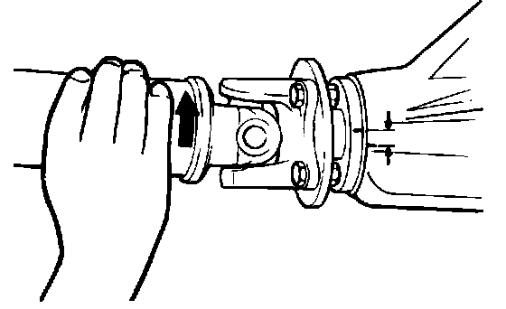 3. Turn the propeller shaft clockwise as far as it will go. Make the mating marks on the dust cover of the companion flange and on the differential carrier.