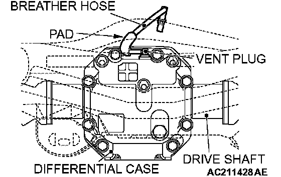 Fully insert the breather hose into the vent plug. Install the breather hose pad as shown in the illustration.