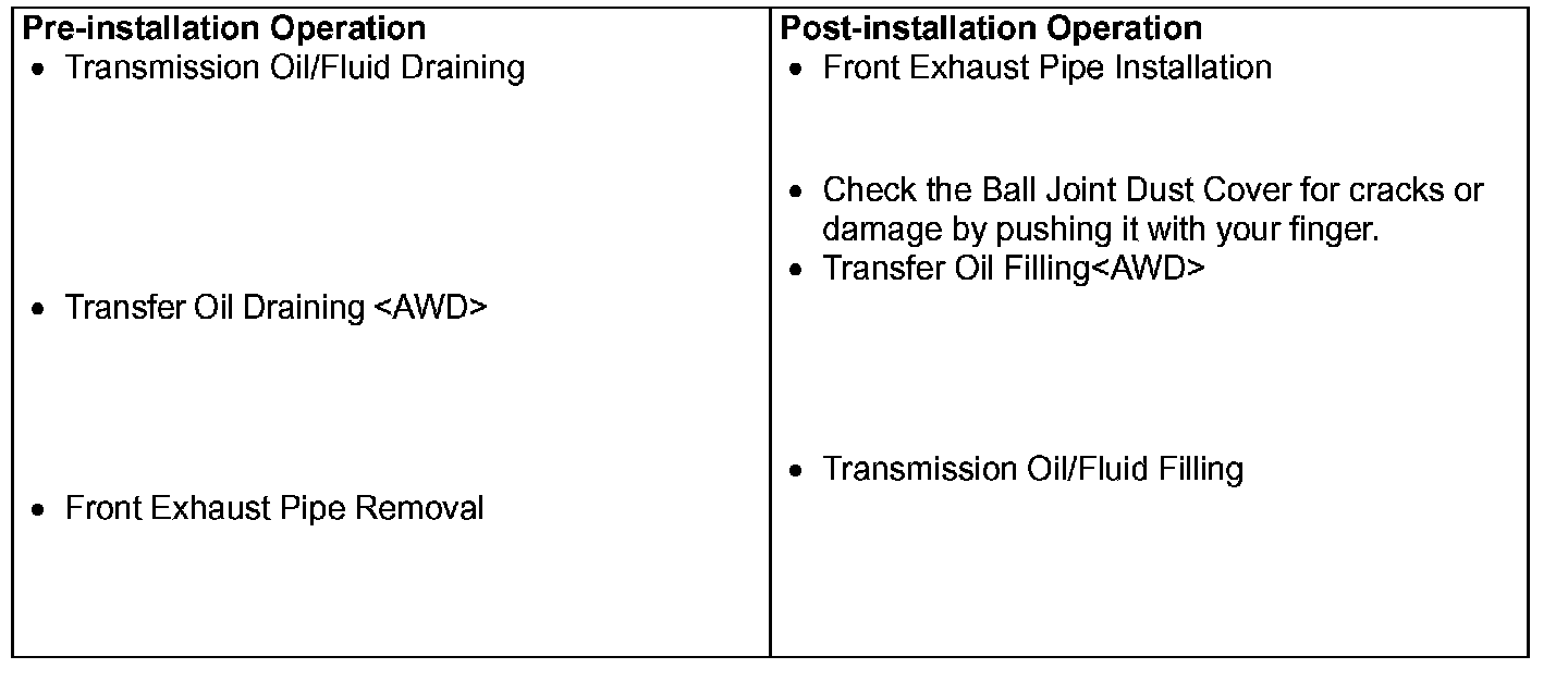 CAUTION: When installing the output shaft, the drive shaft or the drive shaft and inner shaft assembly, be careful that the spline part of the output shaft, the drive shaft or the drive shaft and inner shaft assembly do not damage the oil seal.