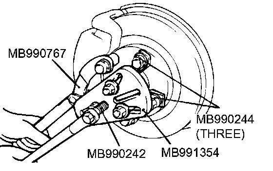 1. Use special tools MB990241 (MB990242 and MB990244), MB991354 and MB990767 to push out the drive shaft or the drive shaft and inner shaft assembly from the hub.