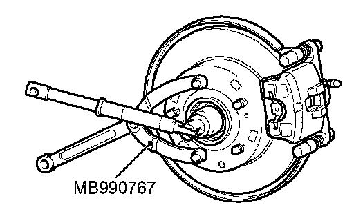 Use special tool MB990767 to fix the hub and remove the drive shaft nut.