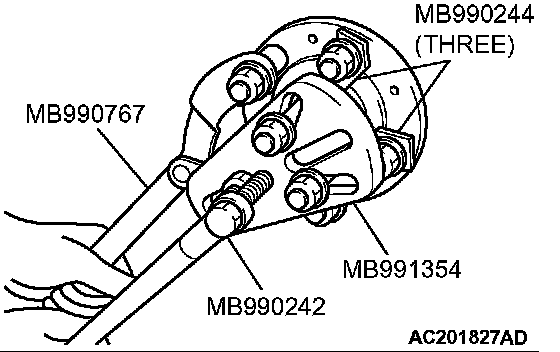 1. Use special tools MB990242, MB990244, MB991354 and MB990767 to push out the drive shaft from the hub.