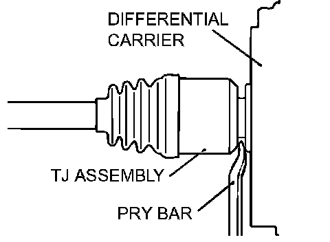 2. Remove the drive shaft from the differential carrier by using a pry bar.