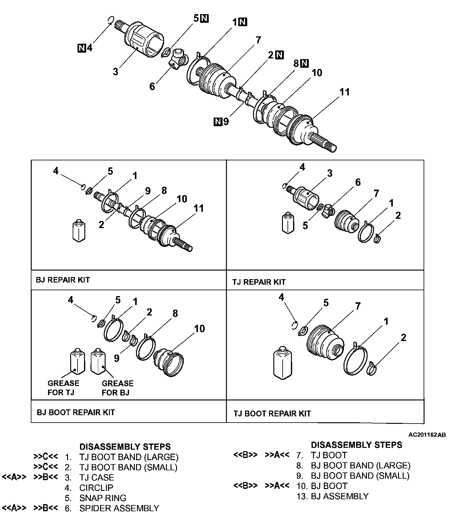^ For vehicles with ABS, be careful not to damage the ABS rotor, which is attached to the BJ outer race during disassembly and reassembly.