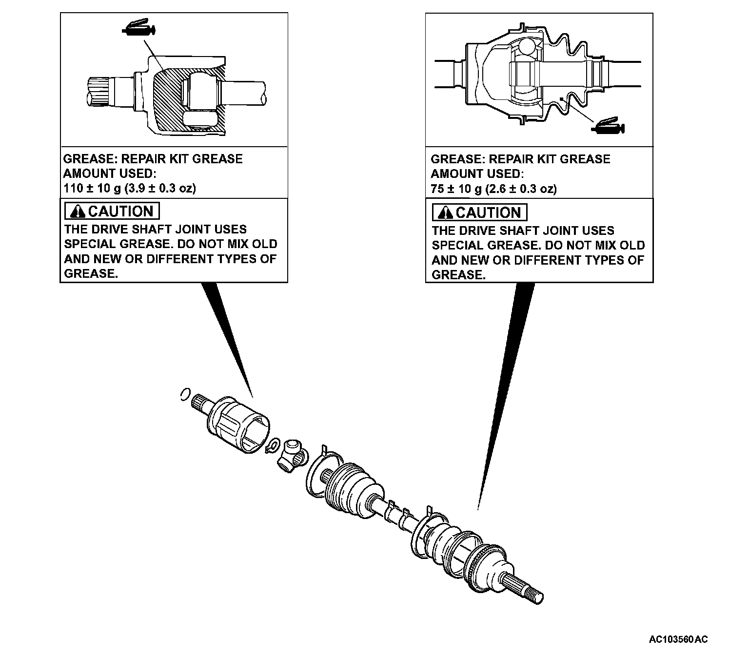 CAUTION: Do not mix old and new or different types of grease, as a special grease is used in the joint.