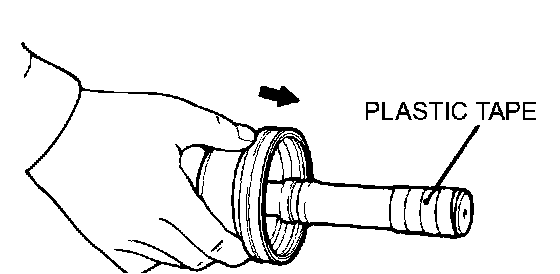 2. Wrap plastic tape around the spline part on the TJ side of the drive shaft so that TJ and BJ boots are not damaged when they are removed.
