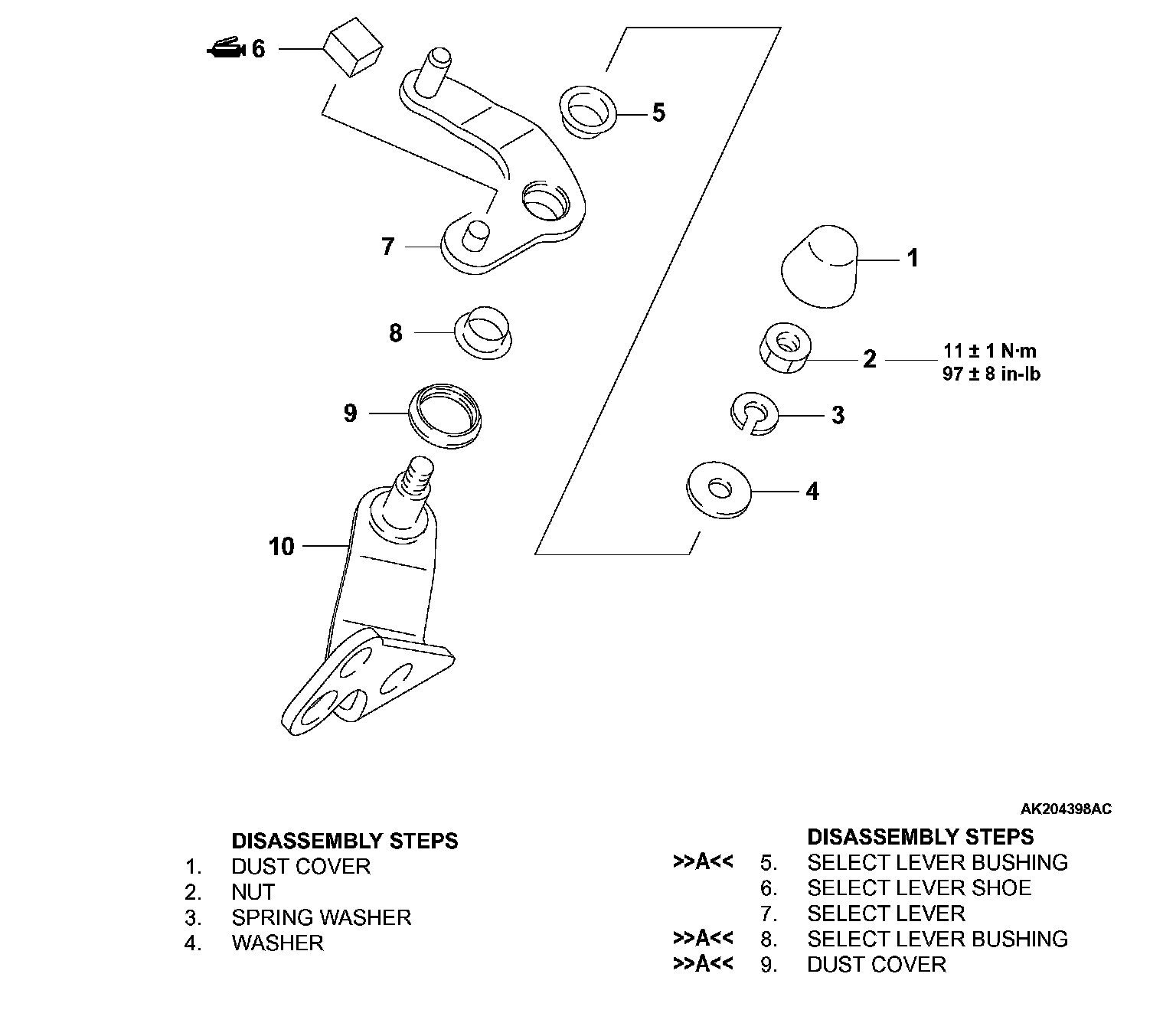 >>A<< DUST COVER AND SELECT LEVER BUSHING INSTALLATION