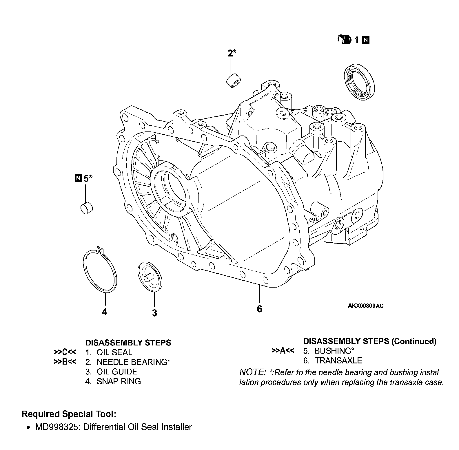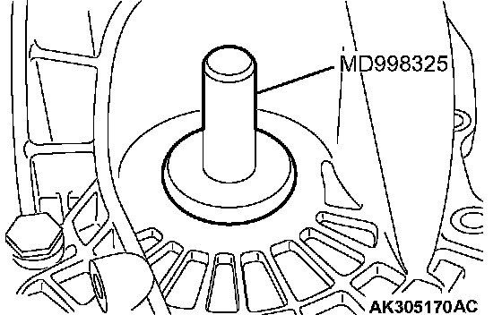 2. Using special tool MD998325, press fit the oil seal into the transaxle case.