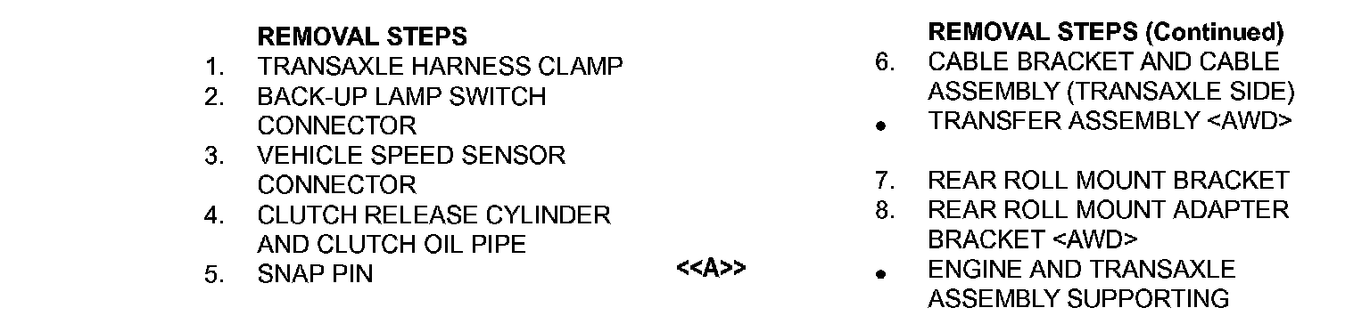 <> ENGINE AND TRANSAXLE ASSEMBLY SUPPORTING/TRANSAXLE MOUNTING ASSEMBLY REMOVAL