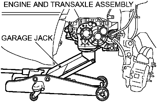 While supporting the engine and transaxle assembly with a garage jack, remove the transaxle mounting assembly.