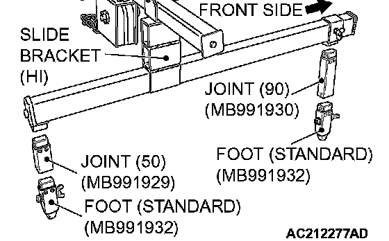 2. Set special tools MB991454 to hold the engine/transaxle assembly.