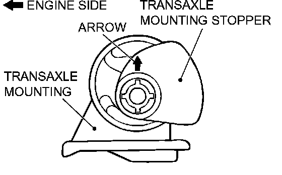 Install the transaxle mounting stopper so that the arrow points as shown in the illustration.