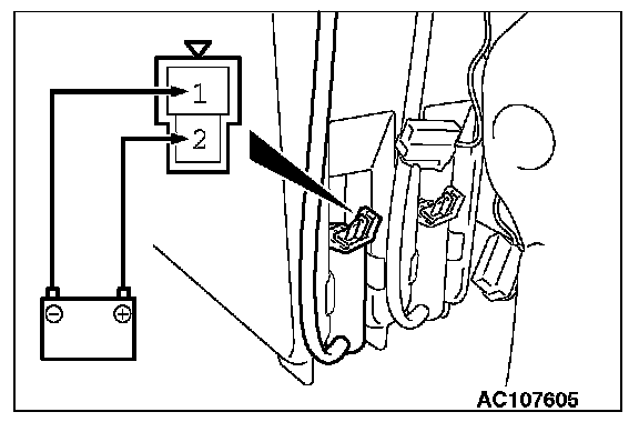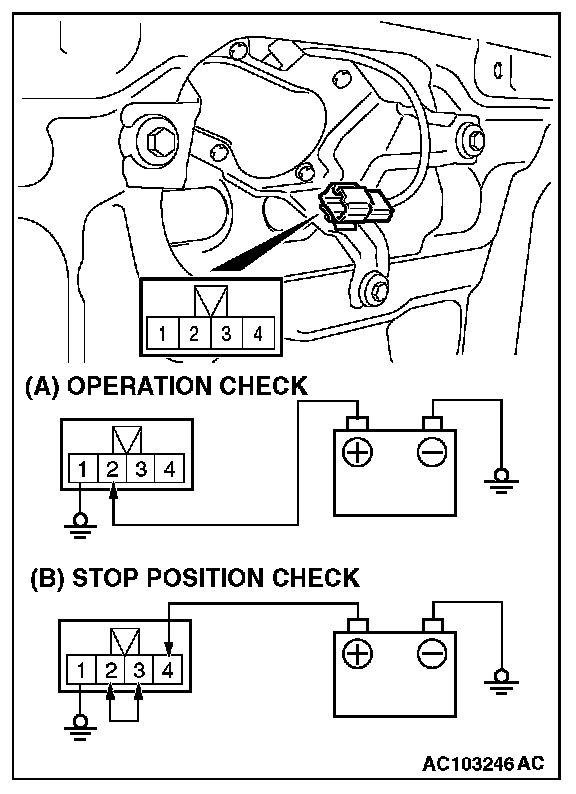 1. Connect the battery to the rear wiper motor as shown in figure (A).