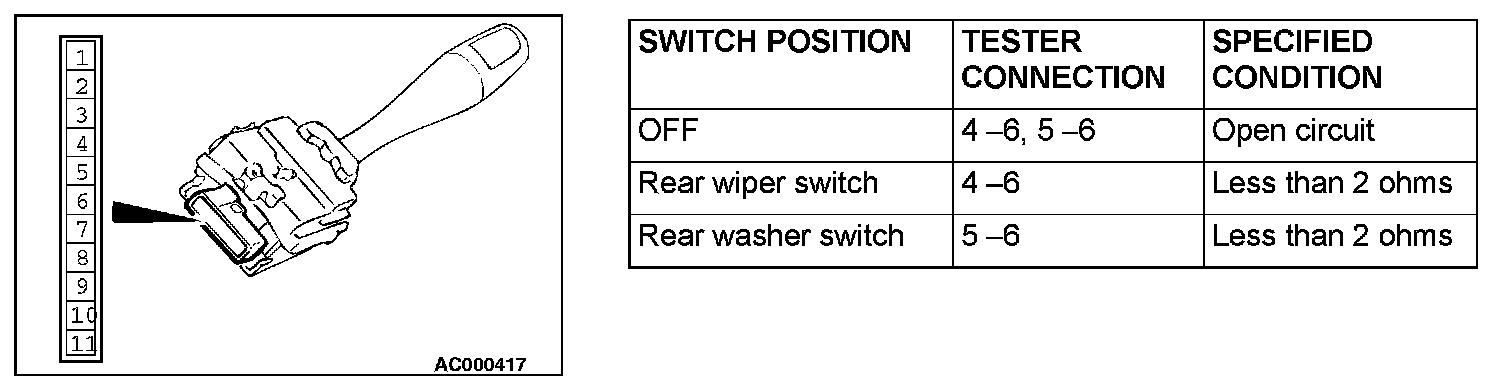 REAR WIPER AND WASHER SWITCH CHECK